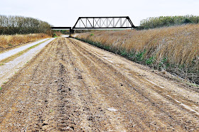Ricos campos y pastizales altísimos siguiendo las vías muertas del antiguo FCCA, hasta llegar al cruce con el viejo ramal Rosario-Puerto Belgrano, actualmente concesionado.